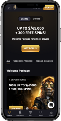 Welcome package worth up to $5,000 + 300 free spins
